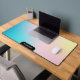 Soft colours, modern gradient iridescent background with turquoise blue, pink, and yellow colours blend—customisable discrete monogram on black.