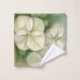 This set of towels is decorated with artwork in soft pastel colours picturing three delicate creamy white oakleaf hydrangea blossoms with buds accented in green.