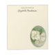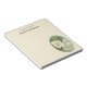 This easy to personalise notepad is embellished with artwork in soft pastel colours picturing three creamy white oakleaf hydrangea blossoms with buds accented in green set against a pale cream yellow background.
