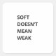 This striking, clean, and minimalist design features the powerful and inspiring phrase: "SOFT DOESN'T MEAN WEAK."