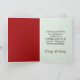 This card is great fun and good quality. I loved the humour inside and on the back. There is the opportunity to change the orientation of this card from landscape to portrait, which I did. It is relatively straightforward to amend the typeface to fit the new orientation. It was well packaged with no plastic. The printing on this card is excellent.