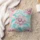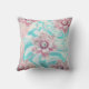 This throw pillow has pastels, a soft green blue and lovely pink flowers on it. The flowers have a diamond for the center.