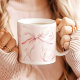 Cute & charming pink coffee mug featuring a soft blush pink typography design and a delicate bow illustration.