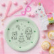 Soft Green Cute Girl and Cat Christmas Design Paper Plate