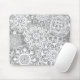 A nice mousepad featuring an elegant floral mandala pattern in soft grey and white.