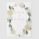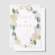 Announce your wedding with a touch of elegance using this save the date vellum card. Featuring a floral wreath of ivory and cream flowers, complemented by greenery and faux gold foil accents, this card offers a sophisticated and modern look. Perfect for any wedding theme, you can easily customise the card with your names, wedding date, and additional details. The translucent vellum material adds an extra layer of elegance and charm to your save-the-date announcement. Whether you're planning a rustic, classic, or contemporary wedding, this vellum card will create a lasting impression and get your guests excited for the celebration.