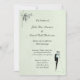 Soft mint green toned background with a subtle watercolor look. Features an illustration of a bride and groom and a decorative corner border. This wedding design comes on many paper products to suit all your wedding set needs.