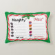 OK. Which side of this soft pillow do you lay your head on? Naughty or Nice? Here's a handy Christmas checklist to help Santa Claus keep track with a candy cane frame, bright red and green holly and berries. A perfect funny gift for the holidays!