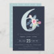 SOFT NAVY BLUSH BLUE FLORAL 6TH ANY AGE BIRTHDAY INVITATION
