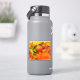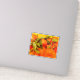 This picture has a bunch of oranges with a yellow background on a sticker