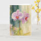 Send a message of calm beauty with this enchanting watercolor note card featuring delicate lavender-pink orchids. The hand-painted style creates a serene, airy feel, perfect for thank-yous, birthdays, sympathy notes, or everyday correspondence. Gentle washes of green and gold surround the blossoms, giving the artwork a warm, uplifting glow.