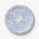Pastel hydrangeas in beautiful light colour of mauvy blue accent this paper plate. Lovely garden flowers. Add a name or words, great for a bridal shower or wedding.