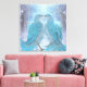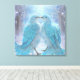CANVAS PRINT - DECOR - Two Love Birds - Winter Snow - Soft Pastel Blue - Aqua Turquoise Teal
