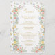 Soft Pastel Ornate Spring Garden Gold Wedding Menu