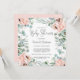 A beautifully feminine baby shower invitation featuring a corner bouquet of watercolor poppies, roses, eucalyptus and trailing greenery in pastel beige, pink, green and blue-green. The square shape and trendy type face pairings that include handwritten script and elegant serif make this a unique and lovely invitation that your guests will be delighted to receive. This invitation is a great choice for the mother-to-be who is expecting a baby girl. Personalise the easy to use text template with your event details.
