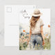 Welcome the season with this elegant Hello Spring watercolor postcard featuring a soft, painterly illustration of a woman walking through blooming wildflowers. Designed in a muted neutral and pastel palette of blush, peach, sage green, soft blue, and warm beige, this artwork captures the airy lightness of spring in a romantic, modern watercolor style.