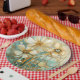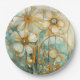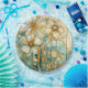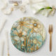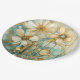 Flowers in shades of peach and beige. Light teal blue background with beige shades.