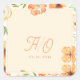 Soft Peach Garden Floral Monogram Wedding Square Sticker