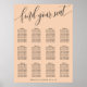 Help your guests find their places with ease using this elegant soft peach wedding seating chart. The design features a modern, hand-lettered "find your seat" script in black, paired with a clean serif font for guest names and table numbers. Its sophisticated minimalist aesthetic and warm peach tone make it a versatile choice that beautifully complements a variety of wedding themes, from romantic garden ceremonies to modern indoor receptions. This layout is perfectly structured for high readability, ensuring a smooth transition for your guests from the ceremony to the celebration. It provides a polished and professional touch to your special day's decor.