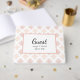 A beautifully presented guest book which came with a lovely gift box for storage. The book was hard back so stayed fresh after being handed around to all our wedding guests. We had lots of compliments about the design which went perfectly with our theme. Perfect, no issues at all with the printing. It arrived on time and came well packaged.