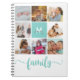 Adorable notebook with eight special photos of the family. The word "family" is in handwritten/calligraphic style.