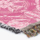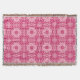 Throw in an abstract, geometric 4-way mandala pattern in soft shades of fuchsia and pastel pink