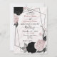 elegant black and soft pink flowers with grey leaves geometric wedding invitation