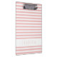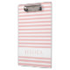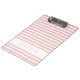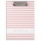 Soft pink and white striped pattern clipboard featuring a personalised name print on front and back. For matching pink striped stationery and more colour options check out the full collection below and visit Dots & Stripes Pattern Design Studio by Maggie B for more personalised stationery.