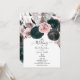 Soft Pink & Black Floral Greenery White Wedding Invitation