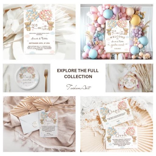 This cute gender reveal party decoration napkins in pastel soft colours, watercolor Bears holding pink and blue balloons, twinkle stars and clouds around. This gender reveal collection is a mix of minimalist, elegant and modern bohemian style. Don't forget to discover the full collection!