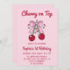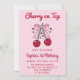 Soft Pink Bow Cherry on Top 1st Birthday Invitation