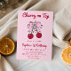 Celebrate a very sweet milestone with this charming Cherry on Top First Birthday Invitation. Featuring bright red cherries tied with a delicate pink bow and playful heart accents on a soft blush pink background, this design is both adorable and elegant.