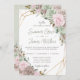 Soft Pink Brown Sage Green Floral Gold Wedding Invitation