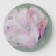 Pastel artwork representing a pretty flamingo in soft pastel hues of green and pink embellishes this clock along with elegant dark grey-green numerals.