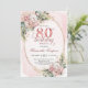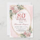 Soft Pink Floral Greenery Gold Glitter 80th Bday Invitation