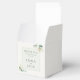 Delicate blush pink watercolor flowers and soft green leaves form an elegant frame around the couple’s names, lending this romantic wedding favour box a charming and graceful style. The timeless botanical design blends vintage-inspired sophistication with a fresh, pastel palette—perfect for enhancing a garden party table, autumn celebration, or rustic elegant wedding. The classic serif names, highlighted by the wedding date, bring a meaningful, heartfelt touch that makes this detail a memorable expression of appreciation at your event. The refined, soft colour scheme and botanical artistry ensure your decor feels both inviting and unique—ideal for those who love timeless, garden-inspired celebrations.