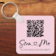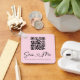 Modern calligraphy font with a heart business keychain. Customize this keychain with your QR code or click “customize further” to change the background color to match your business’ color scheme.