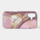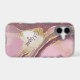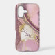 She will love the subtle beauty and unique style of this personalised phone case! Soft pink combines with muted maroon and a bit of tan grey to form a unique marbling effect. Gold faux glitter lines separate the colours. Then her name is in maroon over a gold glitter lined, abstract banner at the centre. Beautiful and elegant!
