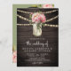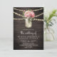Soft Pink Peony Mason Jar QR Code Wood Wedding Invitation