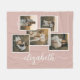 Soft Pink Personalised With Name 5 Photo Collage Fleece Blanket