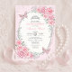 Soft Pink Silver Quinceañera Rose Flower Butterfly Invitation