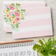 Soft Pink and Yellow Stripes Floral with mint leaves Watercolor