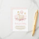 This feminine design features an illustration of a pretty swan princess with balloon surrounded by gorgeous watercolor blush pink roses and gold glitter confetti