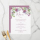 Soft Purple Floral Wedding Reception Menu Card designed with a cluster of soft purple flowers on a white background. The text includes: Menu, Appetizer, Entre and Dessert with selection choices. The Reverse text includes: The Bride and Groom's Names and Wedding Date. To personalise, simply insert your Wedding Menu Details into step-by-step template, replacing the sample text. Be sure to view the complete Soft Purple Floral Wedding Collection for matching cards and accessories.