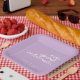 Pretty, modern, minimalist and trendy wedding paper party plate features a soft pastel purple background (Pantone's 2022 colour pick "Orchid Bloom") with white customisable text blocks in modern fonts