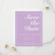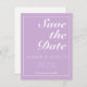 Pretty, modern, minimalist and trendy wedding Save the Date features a soft pastel purple background with white customisable text blocks in modern fonts. Add your customised wedding website QR code on back.