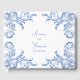 © 2018 Socialite Designs Inc. Beautiful corner swirls and flourishes wedding guestbook, painted in soft royal blue watercolor. The back of the guestbook has a photo of the couple. The design is part of our Soft Royal Blue Watercolor collection. If you require help with customising or would like other products created with this design, please do not hesitate to contact Socialite Designs.
