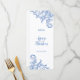 © 2018 Socialite Designs Inc. Beautiful corner swirls and flourishes, hand-painted in soft royal blue watercolor, menu cards that complement the matching wedding collection.
