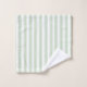 This pretty bath towel set features ticking stripes in soft shades of sage green and white.