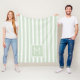 Soft Sage Green and White Ticking Stripe Monogram Fleece Blanket